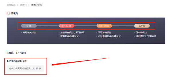 每个人的账号都是100分,如果你违规就会被扣除信用分,60~90分,你就不能申请权益。