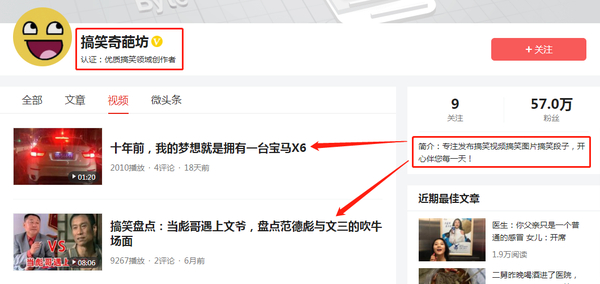 搞笑领域作者大家看上面这两个账号,他们选择好要创作的领域后。