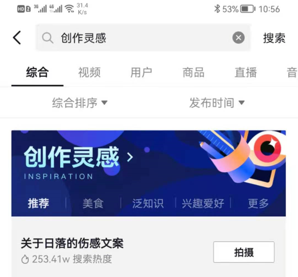 ②:进入“创作灵感”,找到与你适合的话题,热度越高越好。
