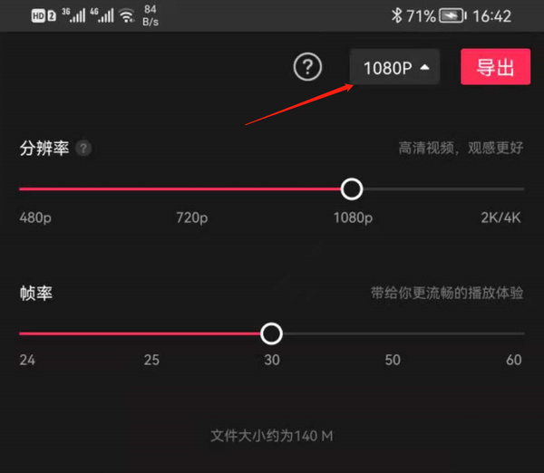 然后就是导出的画质选择,软件右上角是画质选择,1080P是高清画质,2K/4K是超清画质,选择好你想要导出的画质,你就可以点击导出了。