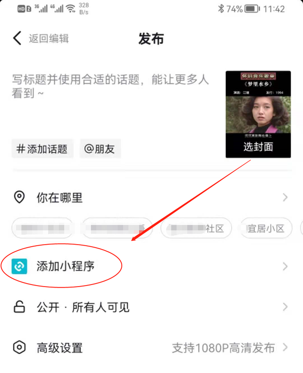 选择一个合适的小程序即可,注意不要开wifi发布作品,会没有推荐量的。