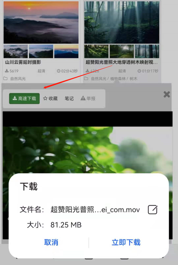 ②:一定要勾选上,点击左下角的“高清画质”这样你素材才是高清的。