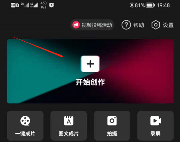 ①:把下载好的素材导入到剪映,点击剪映APP“开始创作”就可以开始导入啦