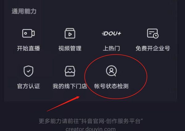 ②点击“创作者服务中心”找到“账号状态检测”功能