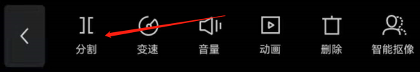 ⑥:剪辑;接下来就是剪辑部分了,点击“剪辑”→“分割”,先把冗余(多余)内容删减,给素材做一个精剪,把素材精华部分呈现给观众。