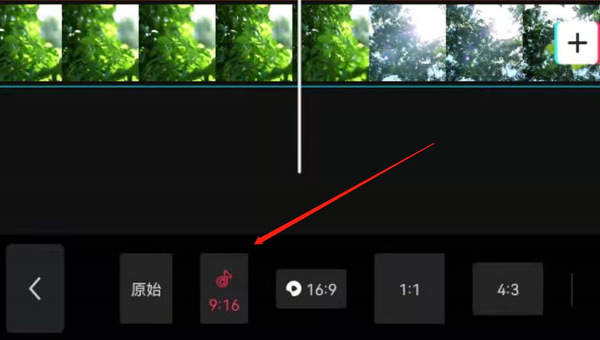 ⑤:比例;素材都上传好之后就需要调整画面比例了,,只需要点击“比例”,选择选9:16就可以了。