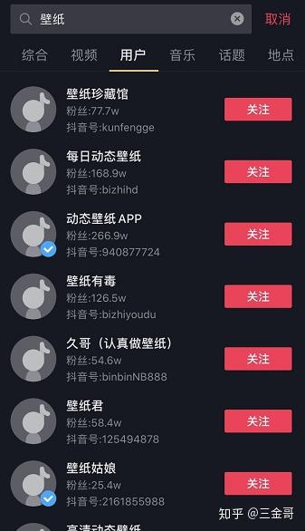 我们去抖音搜一下“壁纸”,就能出来很多用户。