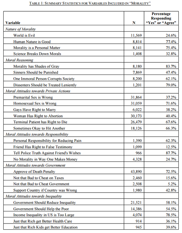Richard设置了很大的样本数据,对受访者询问了一系列用以衡量道德的数据。