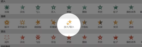 需要选中背景图片,接着在强调动画中,选择「放大/缩小」: