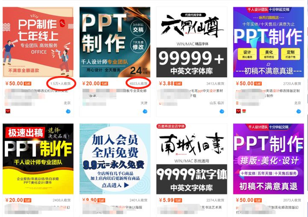 直接在淘宝上搜“PPT定制”,你会发现一堆商家,一页20——50 元不等: