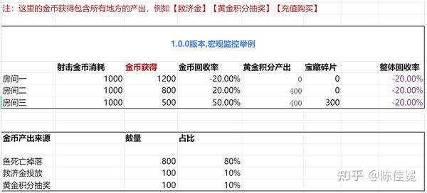 三个房间,表现上看金币的消耗和获得,明显感知是,房间一玩家的钱多了,但是房间二、三玩家的钱少了,但是从整体上去看玩家,玩家的资产都是正增长的。
