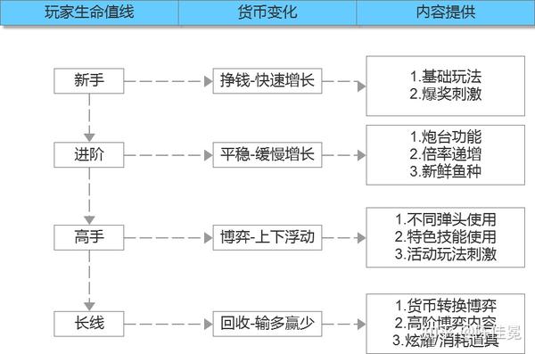 (玩家理论收益)A弹头1001001000B弹头1002002000C弹头2002004000在这里,A-B-C三个弹头的基础配置就如此,A和B的区别对于玩家的感觉上就是,A能炸死的鱼币B多,B和C弹头炸死的鱼差不多但是C奖励高,这个具体配置可以根据各位产品自行分配了,最终带给玩家的收益,就用【价值】进行统一衡量